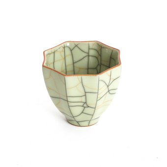 Чашка из жучжоуского фарфора (Жу Яо), в составе которого есть агат, придающий чашке изумрудный оттенок. Жучжоуский фарфор имеет славу «венца сунской эпохи» и демонстрируется в магазинах с особой гордостью. Приятная на ощупь. Чашка «нарабатывается со временем» – на ней возникают тонкие трещинки-кракелюр. Как выбрать чашку Жу Яо читай здесь.