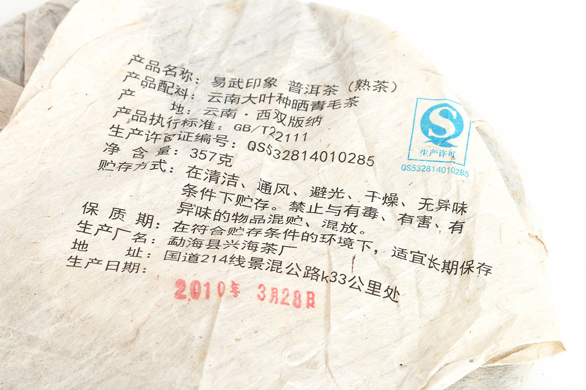 Пуэр Блин Шу "Иу Инь Сянь", 2010г , 357г